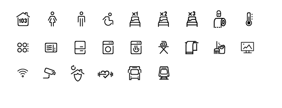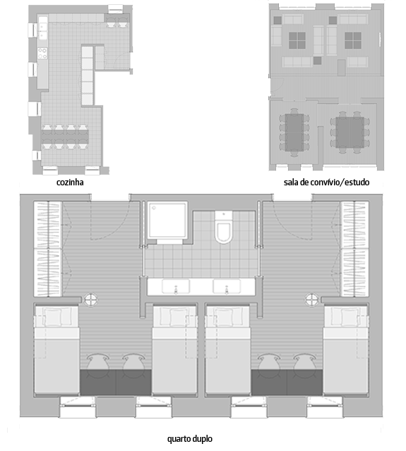 Esta residência mista integra 49 quartos duplos, um quarto triplo e dois quartos individuais, especialmente adaptados para portadores de deficiência, num total de 103 camas.