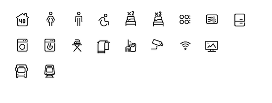 Com um total de 40 camas distribuídas por dois pisos com wc e balneários. Os quartos à disposição são duplos e triplos e há um wc para estudantes portadores de deficiência em cada piso. Inclui duas cozinhas equipadas com frigorífico, placa elétrica, micro-ondas e máquinas de lavar e secar roupa, tábua e ferro de engomar, assim como serviço de troca de roupa de cama e limpeza de quartos e zonas comuns. Sala de convívio equipada com tv e acesso wireless em toda a residência. Sistema de videovigilância.